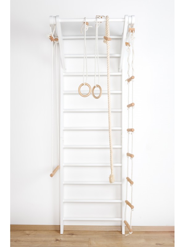 Vous recherchez un équipement sportif polyvalent qui enthousiasmera les enfants tout en permettant aux adultes de s'entraîner ? Notre échelle murale en bois blanc avec accessoires est la solution idéale pour une vie active à la maison – sûre, compacte et fabriquée avec des matériaux naturels de haute qualité. Sa couleur blanche élégante s’intègre parfaitement dans tous les espaces, apportant une sensation de fraîcheur et de propreté.