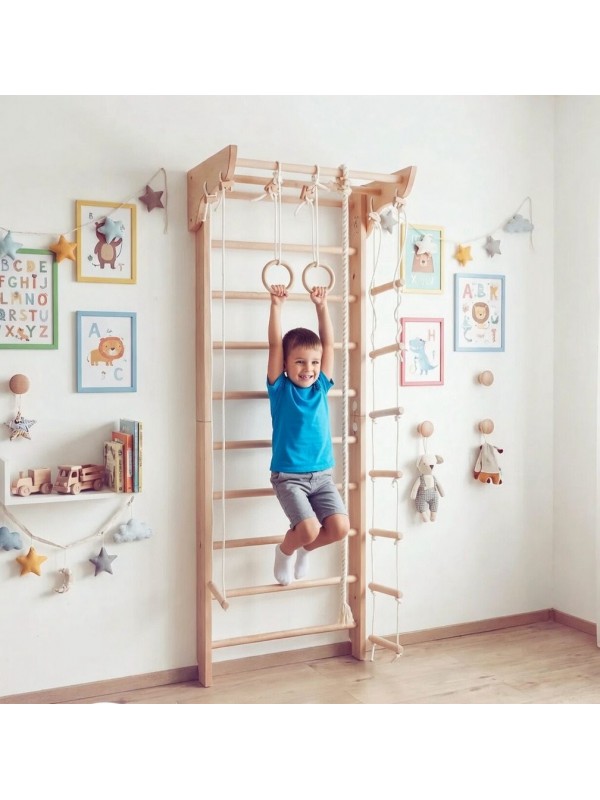 Vous recherchez un équipement sportif multifonction qui enthousiasme les enfants tout en permettant aux adultes de s’entraîner efficacement ? Notre échelle suédoise en bois avec accessoires est la solution parfaite pour un mode de vie actif à la maison – sûr, compact et fabriqué à partir de matériaux naturels de haute qualité.
