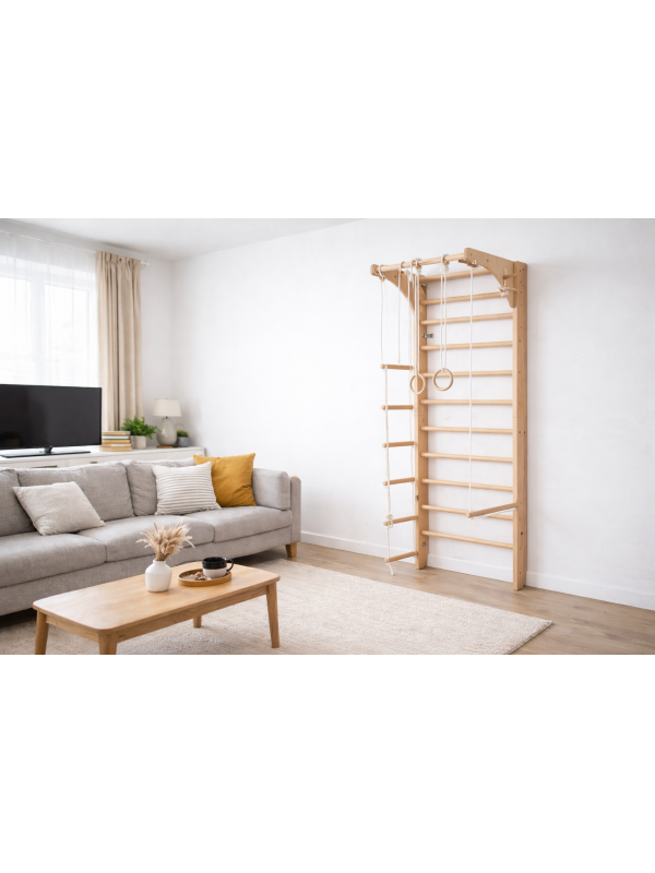 Vous recherchez un équipement de sport polyvalent qui séduira à la fois les enfants et les adultes ? Nos barres murales avec accessoires sont le choix parfait ! Fabriquées en Europe avec des matériaux naturels de haute qualité assurant sécurité et durabilité, et conçues pour prendre un minimum de place – parfaites pour tout domicile.
