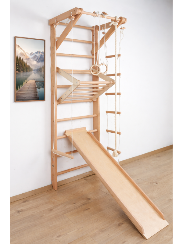 Vous cherchez un équipement d'entraînement polyvalent qui plaira autant aux enfants qu’aux adultes ? L’échelle murale avec accessoires est la solution idéale pour passer du temps actif à la maison – parfaite pour les enfants qui aiment grimper et jouer, et pour les adultes souhaitant s’entraîner sans aller à la salle. Fabriquée en Europe à partir de matériaux naturels de haute qualité, garantissant sécurité et durabilité, et conçue pour occuper un minimum d’espace – un ajout élégant et fonctionnel à tout intérieur.