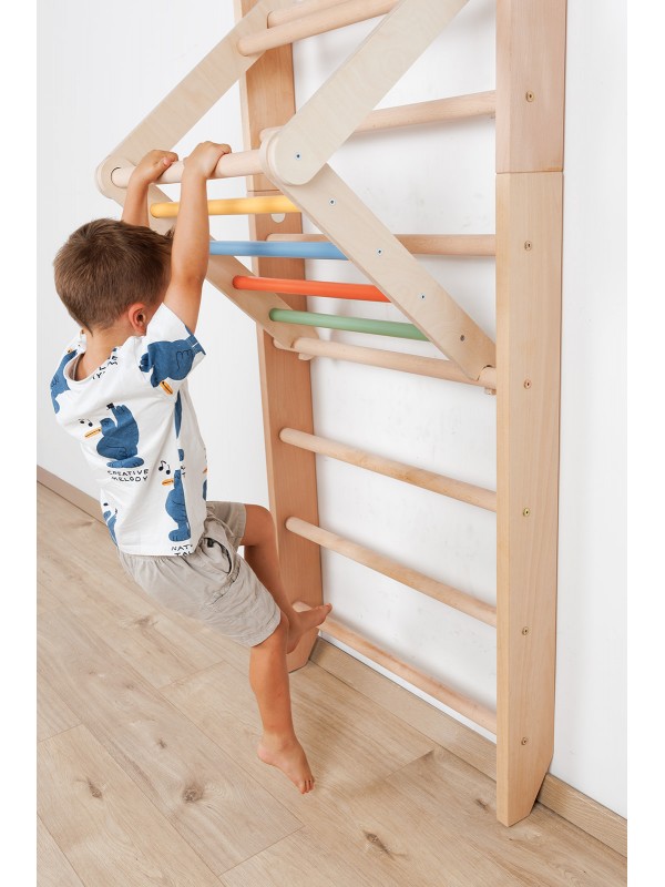 Échelle murale pour enfants avec barre supérieure amovible et accessoires – sécurité et activité à domicile