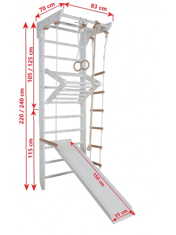Découvrez notre échelle suédoise en bois blanc avec accessoires – la solution parfaite pour des activités physiques et ludiques pour toute la famille. Produit certifié de fabrication européenne, adapté aux enfants et aux adultes, conçu pour une utilisation intérieure.